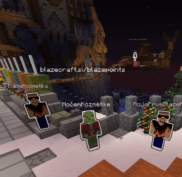 Z BLAZEpoints lahko na BLAZECRAFTU DOBITE posebne vizualne efekte. TO je naš sistem kozmetike, ki vam omogoča, da si v lobbyju in na izbranih lokacijah prilagodite videz brez vpliva na igro v survival-u. Kozmetiko odklepate Z menijem (zvezda), ki ga imate v inventoriju.